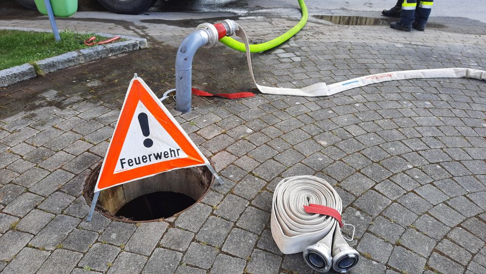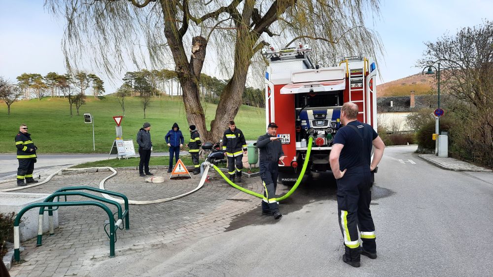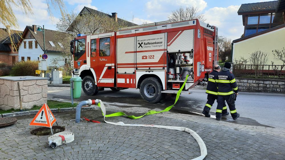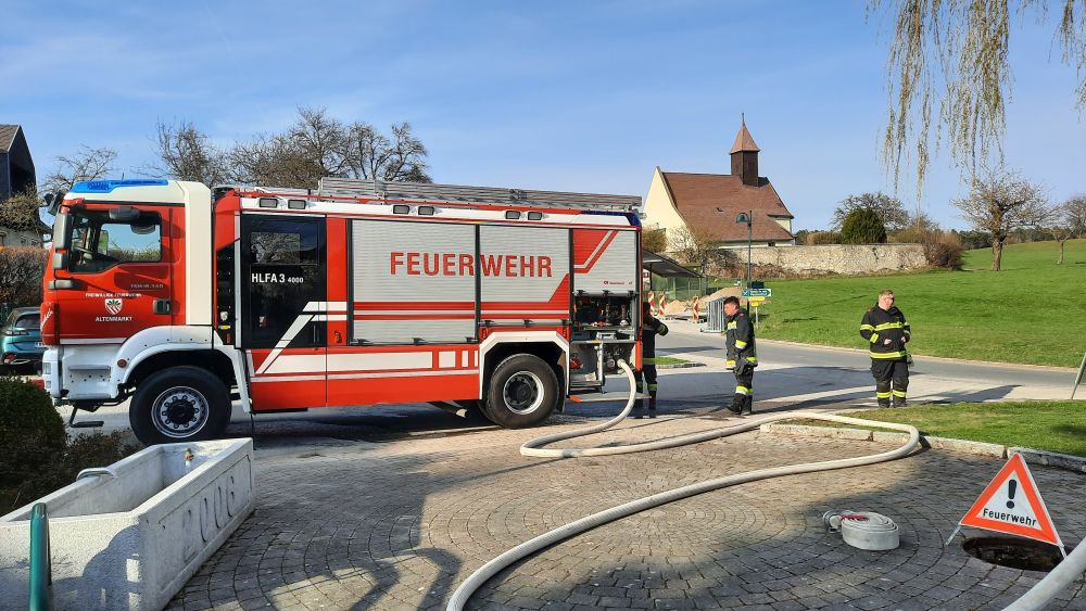 Wassertransport- auffüllen des Löschwasserspeichers mit 60.000 Litern am Dorfplatz Schwarzensee, für die Feuerwehr Neuhaus, Weissenbach, Furth und Altenmarkt lautete die Ausrückemeldung der Feuerwehr Neuhaus am 06.04.2023 um 16.30.