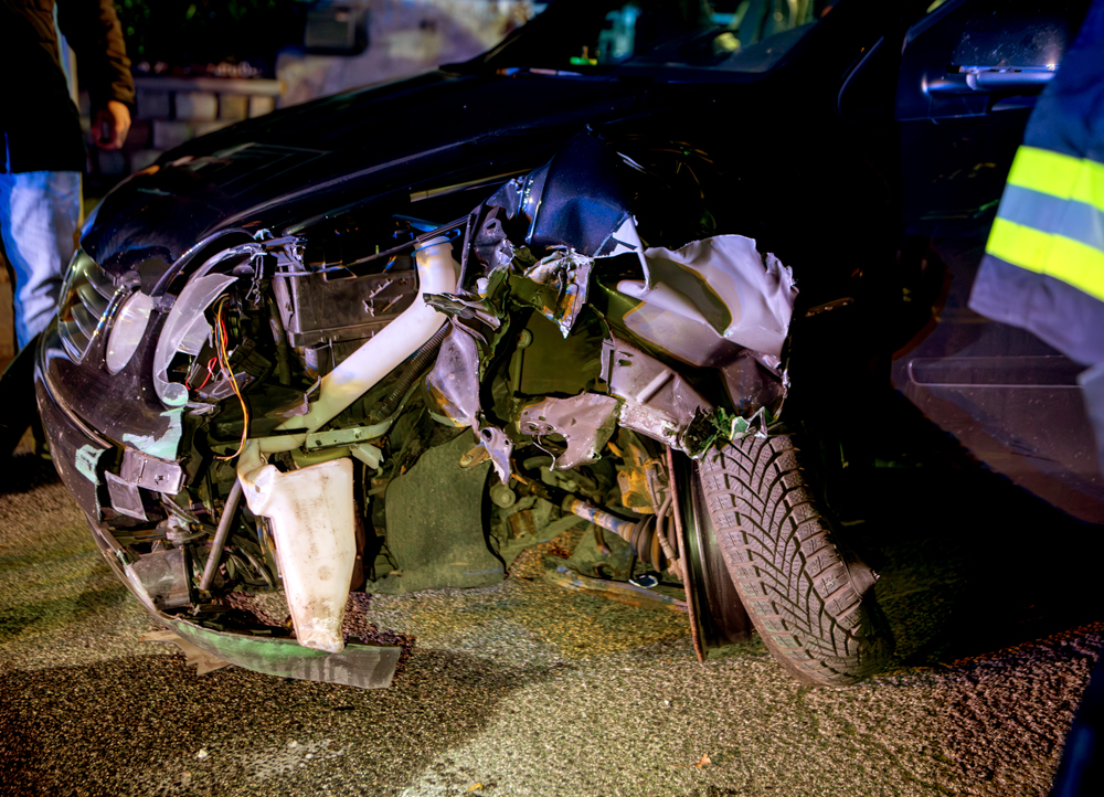 Das Fahrzeug kam schwer beschädigt in der Fahrbahnmitte zum Stillstand.
